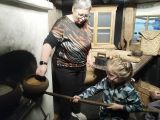 Также дети познакомились с жилищем водлозеров, их бытом и ремёслами. Дошкольники не только узнали названия предметов быта и для чего они нужны ( прялка, люлька, грузило...), но и потрогали их, сами попробовали ухватом захватить чугунок и подержать в руках тяжёлый утюг.