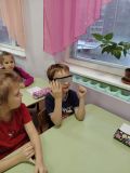 Она объяснила детям, что у каждого человека есть свои особенности, и некоторые люди познают мир на ощупь, по звуку и запаху. Ребята узнали, что есть особый алфавит - шрифт Брайля, пробовали писать буквы специальными устройствами, так же детям ненадолго удалось «увидеть» мир так, как его чувствуют незрячие люди, с помощью волшебных очков.