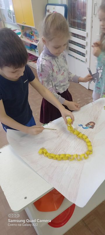 Ребята выполняли разные задания: находили звенья цепи, отгадывали загадки, искали следы русалки. За каждое выполненное задание ребята получали часть картинки. В конце игры сделали коллективную аппликацию из этих частей и нашли сундучок с подарками.