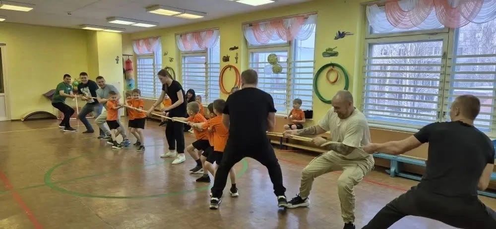 Папы вместе с детьми стали активными участниками спортивных эстафет и состязаний на ловкость, выносливость, силу и смекалку. На протяжении всего праздника в зале царила атмосфера веселья, дружеского состязания и удовольствия. В итоге, победила дружба – обе команды получили заслуженные грамоты.
