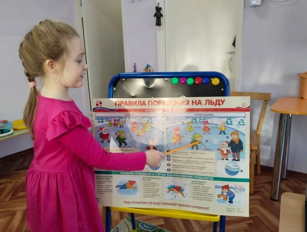 Воспитатели в доступной и игровой форме рассказали ребятам о коварстве весеннего льда, который только кажется крепким. Дошколята узнали, что нельзя выходить на лед без присмотра взрослых, проверять его прочность ударом ноги и приближаться к промоинам. Особое внимание было уделено правилам поведения, если кто-то всё же провалился под лед, и алгоритму вызова спасателей (номер 112).